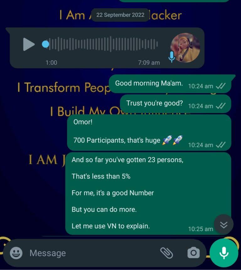 You’ll also be added to an exclusive WhatsApp group with other students and you’ll get access to daily accountability, feedbacks. weekly live Q & A with me, and peer collaboration. Imagine what having access to a closed community of creators like yoou would do